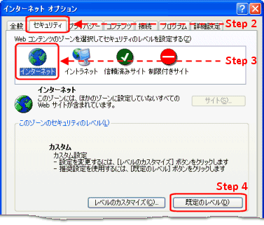 Internet Explorer のセキュリティ設定をデフォルトに戻す