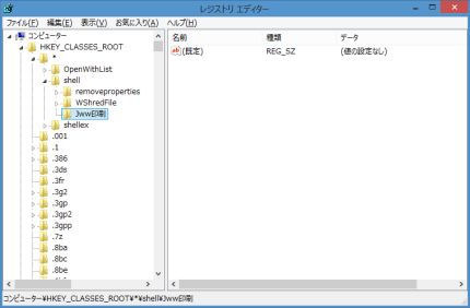 - 「コンピュータ>HKEY_CLASSES_ROOT>*>shell」の部分をいじります。