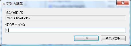 右側の工ントリ MenuShowDelay タブルクリックする。