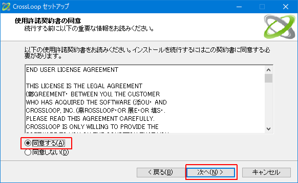 (1) CrossLoopSetup.exe をクリック(実行)する。