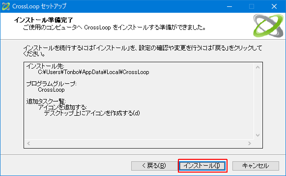 CrossLoopSetup.exe - 保存した CrossLoopSetup.exe を導入する。