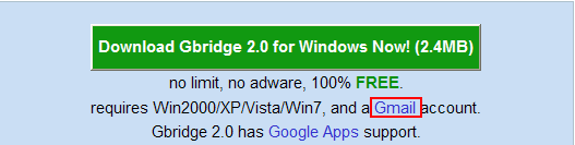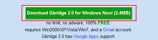 - Dwonload Gbridge 2.0 for Windows Now!(2.4MB) をクリックする。