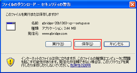 (1) gbridge-20b1363-xp--setup.exe をクリック(実行)する。