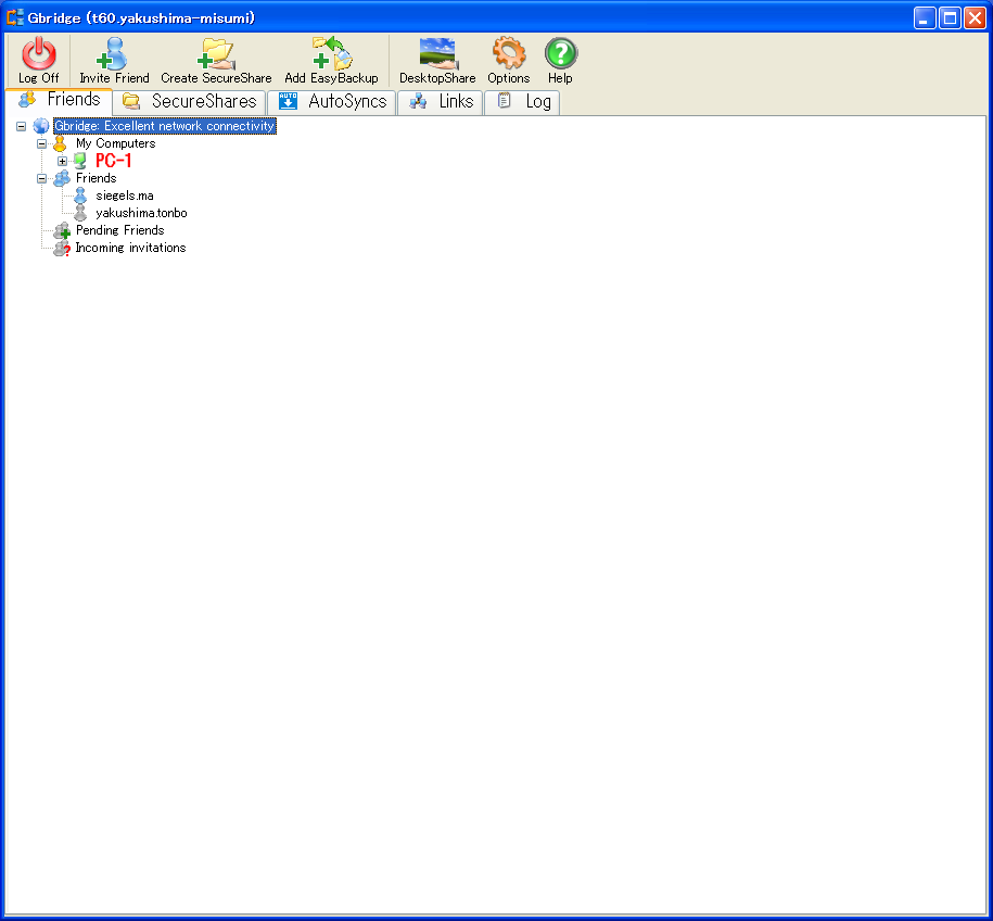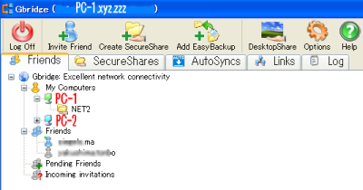 - 起動すると Frendsタブ の My Computers に現在使用しているパソコンのコンピュータ名が表示されます。