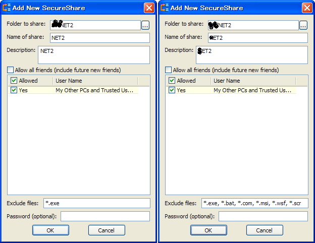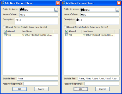 XP/Vista/7 から Vista/7 にアクセスするとダイアログが表示される。
