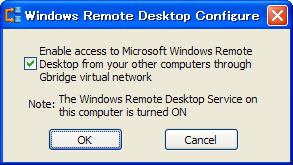 □ にチェックを入れる。(Windowsリモートディスクトップを有効にする。) - これで Gbridge でのリモートディスクトップの設定は完了です。