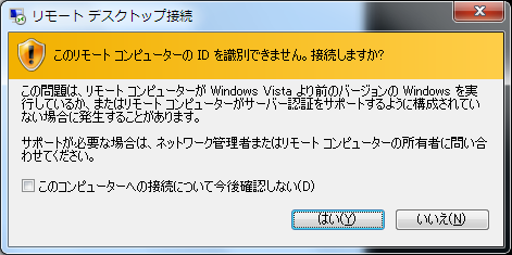 Vista/7 から XP にアクセスしたときはダイアログが表示されるので "はい" をクリックする。 - アクセスしたコンピュータ(自宅)のログインダイアログが開きます。