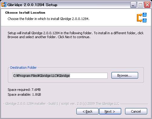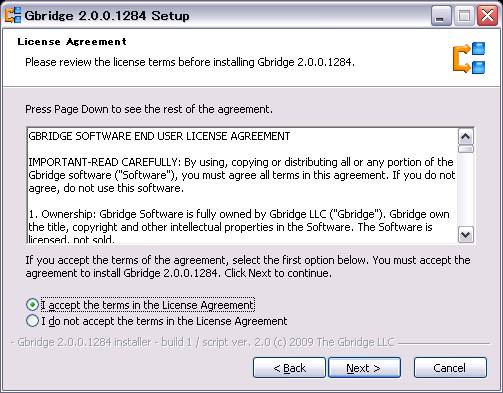 - 保存した gbridge-20b1363-xp--setup.exe を導入する。