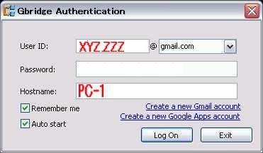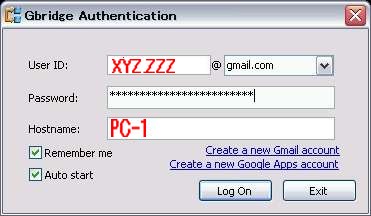Gbridgeを利用するには、それぞれのPCにGbrigdeをインストールし、Googleのアカウントで