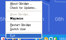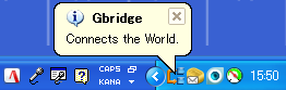 ログインできると 右下のタスクトレイにアイコン が表示される。 - 右下のGbridgeアイコンをクリックすると ポップアップメニュー が表示されます。