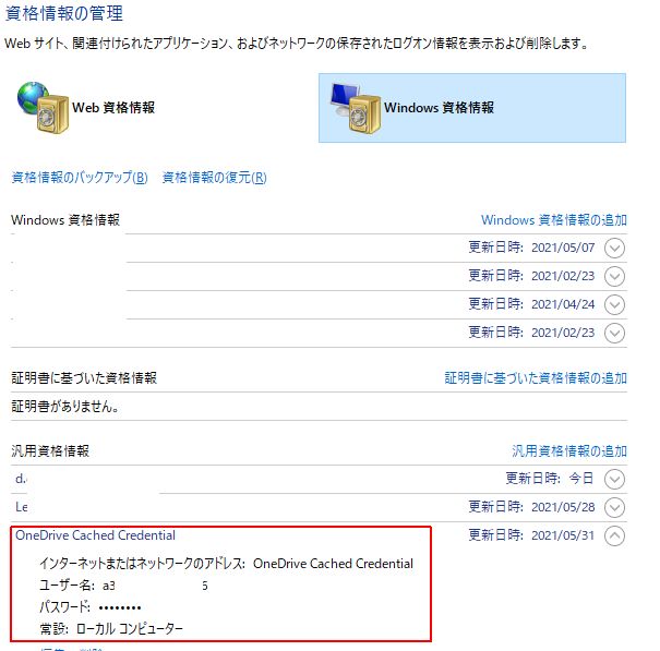 OneDriveのCID番号を調べる~資格情報マネージャー