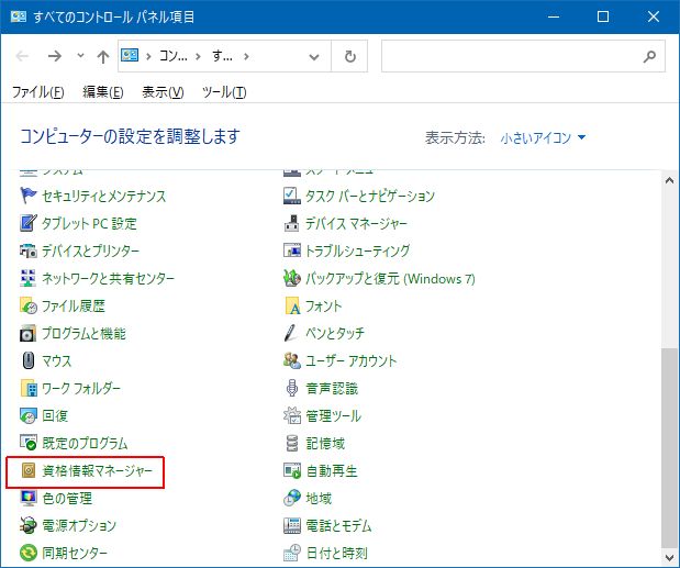 3. 資格情報マネージャーをクリックします。