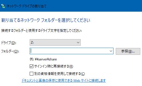 5. ネットワークドライブの割り当てウィンドウが開きます。