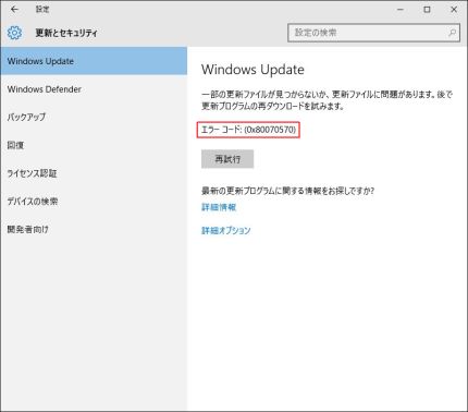 [ Windows 10 の Windows Updateで0x80070570エラー ]