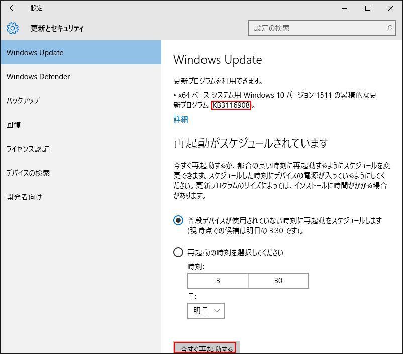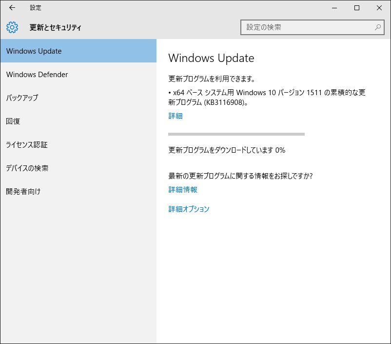 Windows 10 Pro x64環境のWindows Updateで嵌ったのでメモ。累積的なアップデート(KB3116908)を導入しようとした際、
