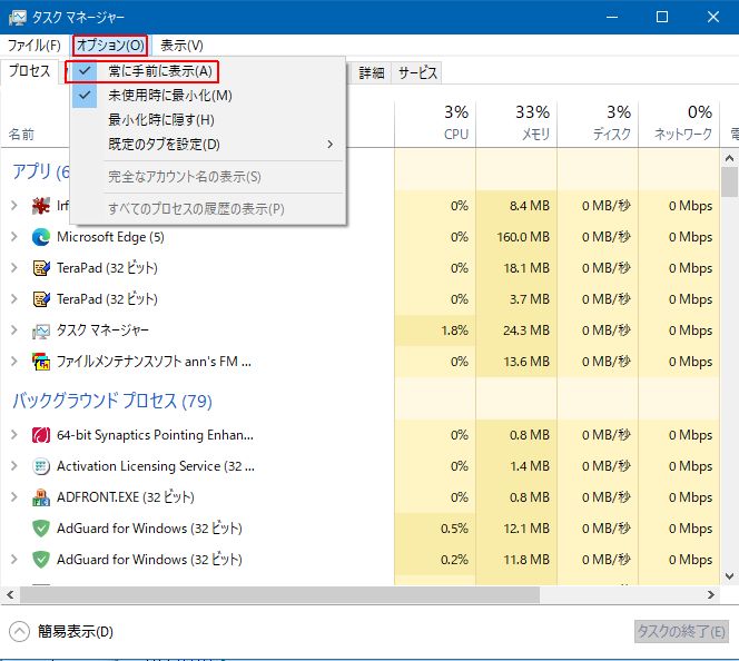 レジストリ編集でアクティブウインドウが最前面に表示されるように修正します。
