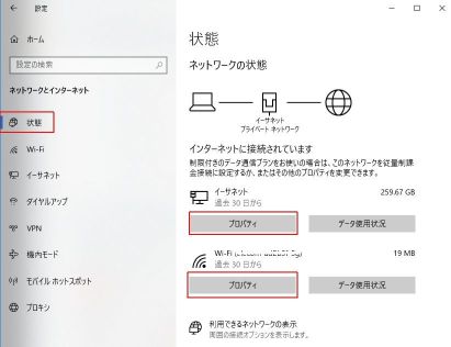 ネットワークプロファイルを変更したい場合は、Windows の設定 → ネットワークとインターネット → 状態を開き、接続プロパティの変更 をクリックします。