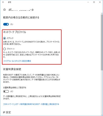初期設定はパブリックで、オフィスや自宅でファイル共有などを利用する場合はプライベートに変更することをお勧めします。