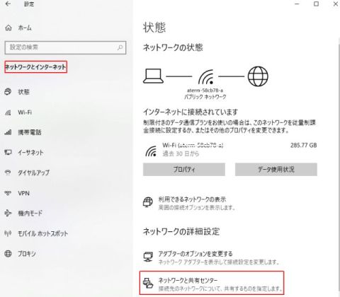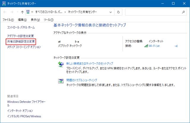 コントロール パネル\ネットワークとインターネット\ネットワークと共有センター