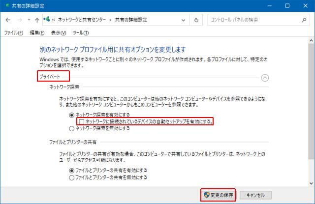 - ネットワークに接続されているデバイスの自動セットアップを有効にする。 のチェックボックスを解除してください。