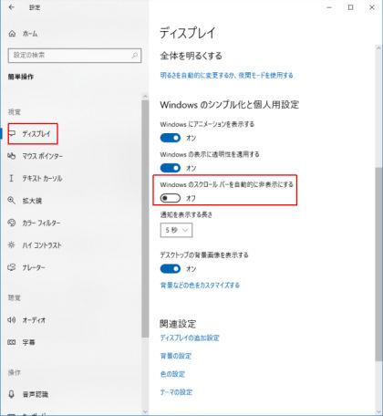 オフ すれば、常時スクロールバーが表示されるようになります。