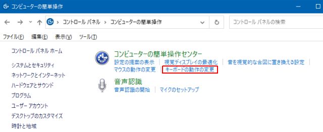 もしくは、コントロールパネル → コンピューターの簡単操作 → キーボード動作の変更 をクリックして、