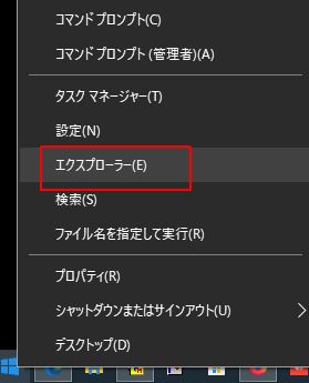 - 左下のスタートボタン を右クリックして エクスプーラをクリックする。