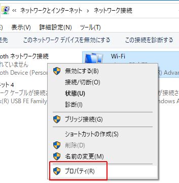 - 使用している [ネットワーク] を右クリックして [プロパティ] をクリックします。