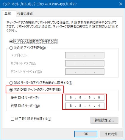 DNS を変更するとネットワークの速度や安定性の問題が解決できることがあります。