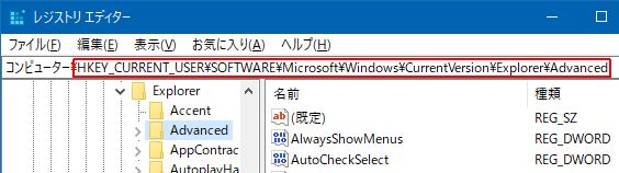 - エクスプローラーを表示し、アドレスバーに次の 下記の[パス] を入力してEnterキーを入力します。