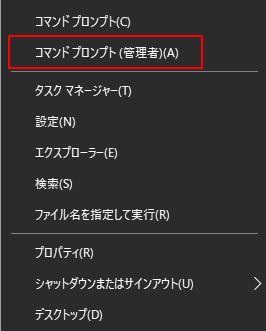- 左下のスタートボタン→コマンドプロンプト(管理者)(A)