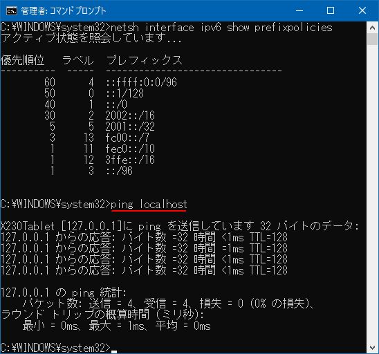 設定を変更したら、もう一度自分自身にPingを打ってみてください。