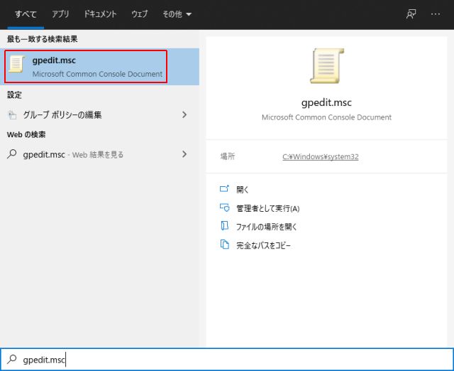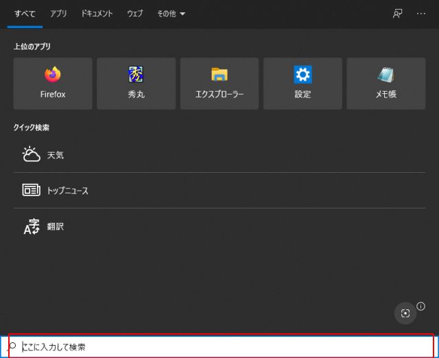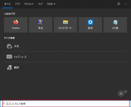 タスクバーの検索ボックスで検索すると Web 検索の結果も表示され、