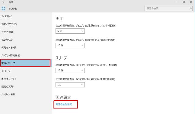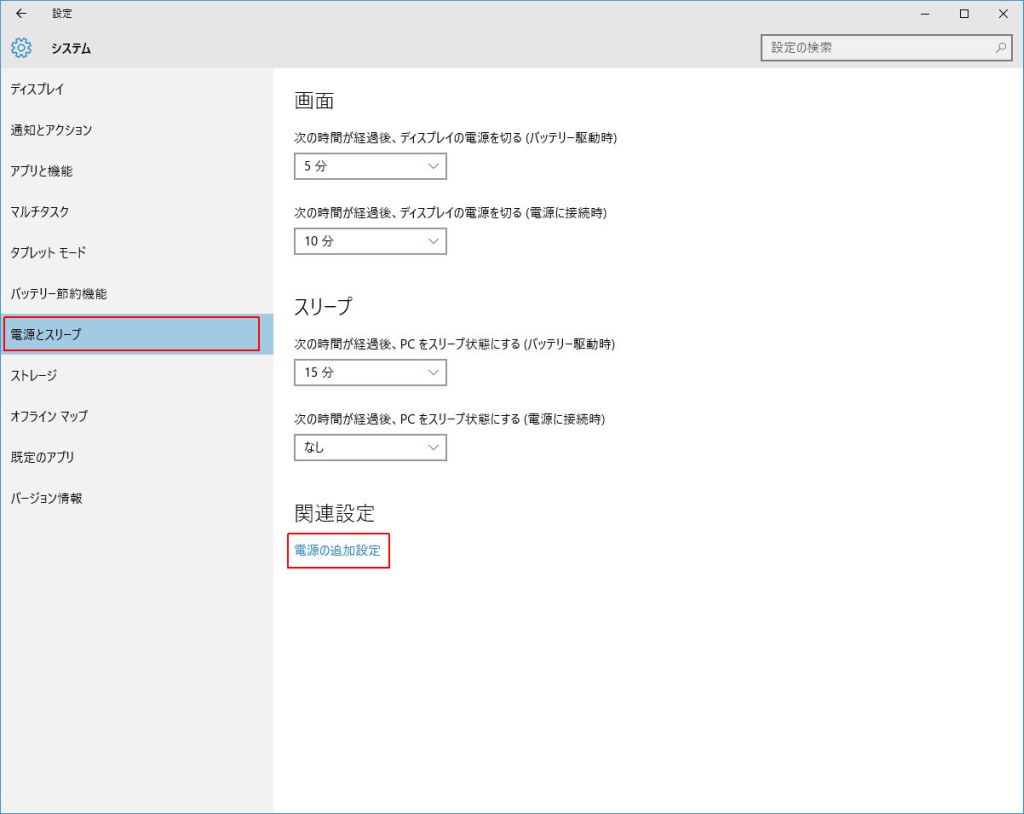 3-1. 設定→システム→電源とスリープ→電源の追加設定