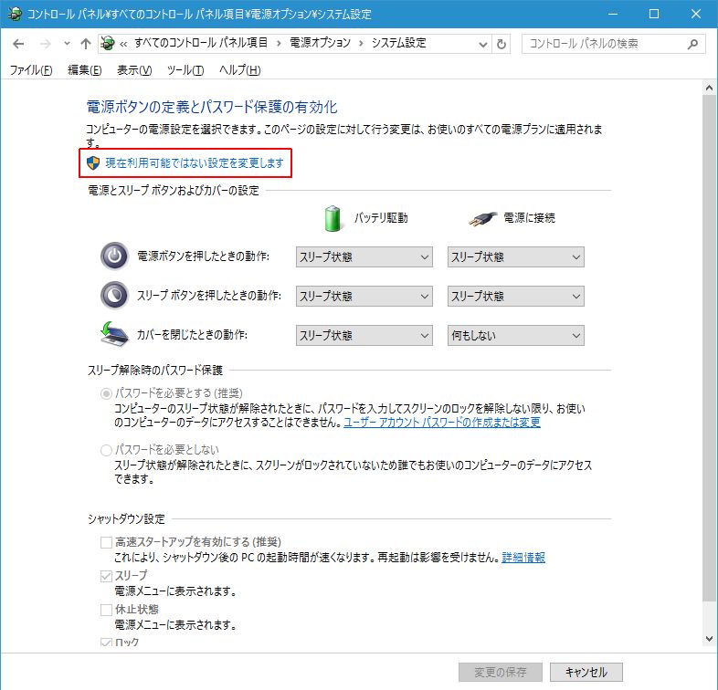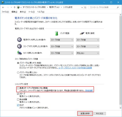 個人的には、高速スタートアップ無効にすることをおすすめします。