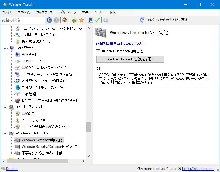 Windows Defenderを無効にする事は大変危険ですのでやめましょう。