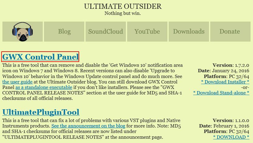 GWX Control Panelをインストールするには上記サイトにアクセスして、