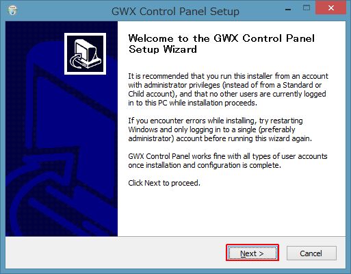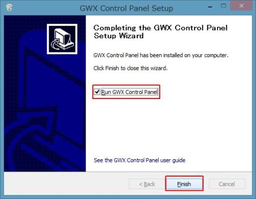□Run GWX Control Panel にチェックがあると、GWX Control Panelが