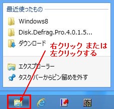 - エクスプローラは閉じて、タスクバーの空いている部分でマウスの右ボタンをクリックします。