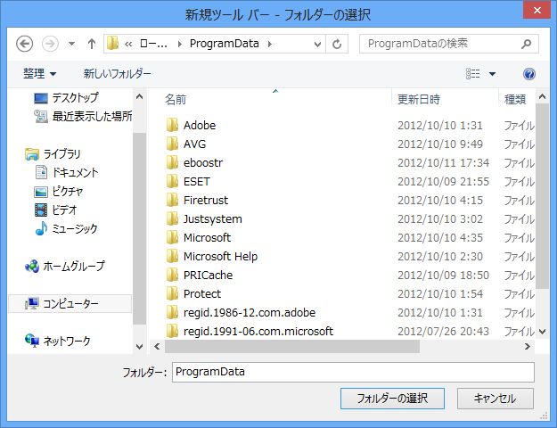 c:\ProgramData\Microsoft\Windows\スタートメニュー\プログラム のフォルダは
