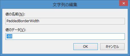 文字列値「PaddedBorderWidth」を右クリックして修正をクリックする。