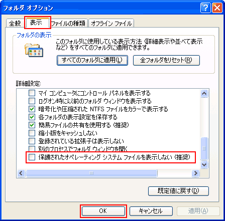 のチェックをはずします。 6. [保護されたオペレーティング システム