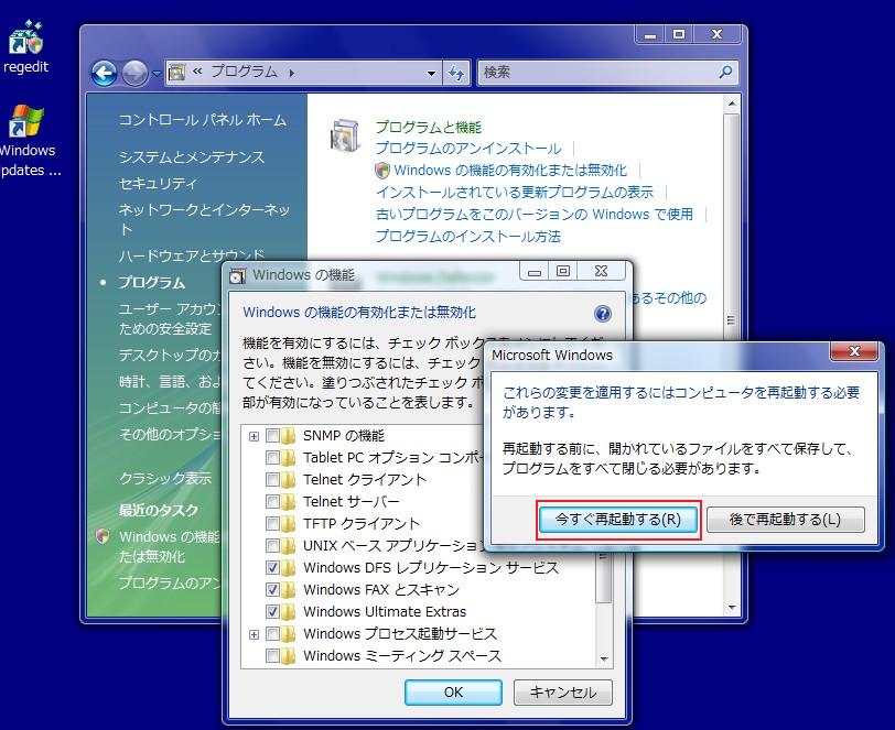 Vistaに搭載されたさまざまな機能を、個別に有効/無効化することができる。