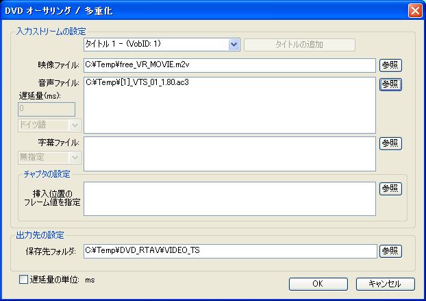 .m2v と .ac3(.mp3)になったファイル名が自動的に表示される。