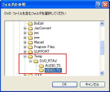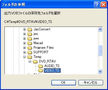 - 保存先フォルダは C:\Temp\DVD_RTAV\VIDEO_TS を指定して OK をクリックする。