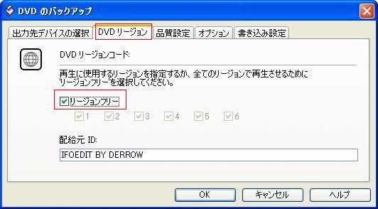 - DVDリージョンがリージョンフリーにチェックが入っていることを確認する。
